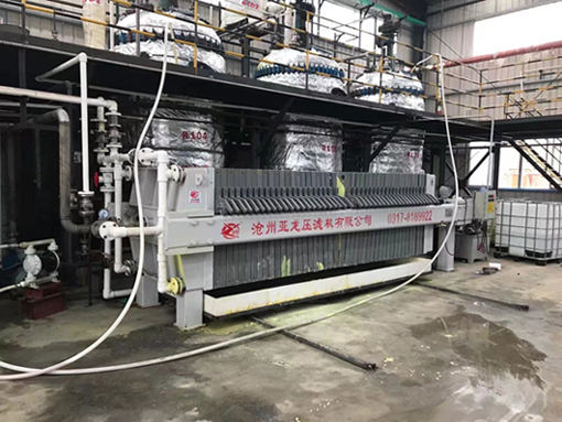這樣從濾板的分料管道中的過濾液_被分到各各一塊濾板與一塊板框組成的濾腔中,其實是流進了被兩種濾布包裹的板框中,與濾布接觸,在強大壓力的趨勢下,過濾也中的液體_會通過濾布,而濾布只能允許液體通過,而固體_被攔截下來,在濾腔中存儲。